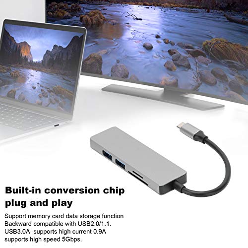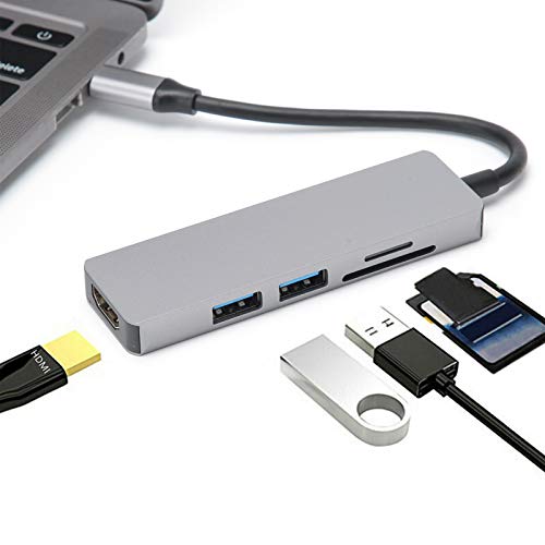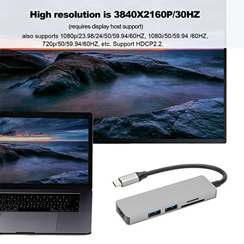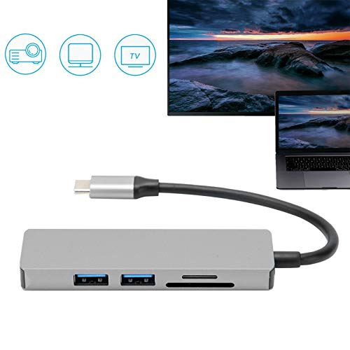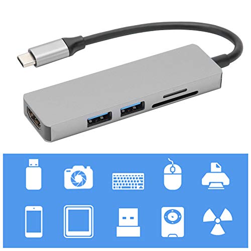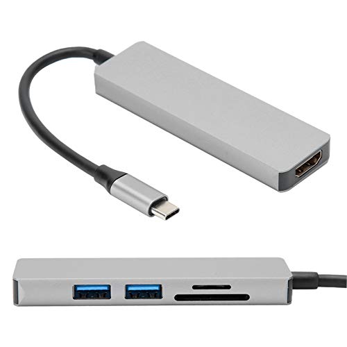 Specification: USB-naar-HDMI-adapter, 5 in 1 Type-C naar HDMI-adapter 2 USB 3.0-geheugenkaartlezer Multipoort-converteradapter, Type-C…